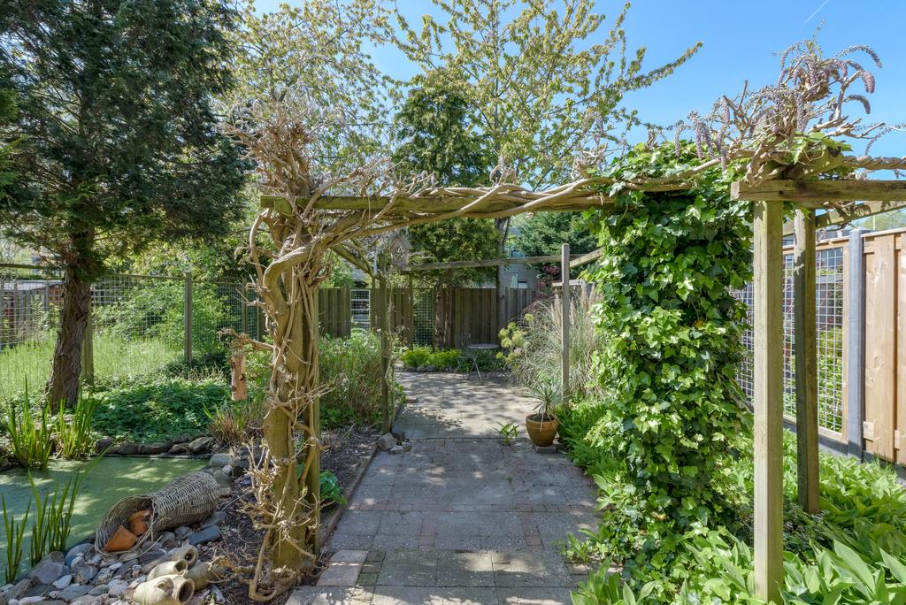 De fraai aangelegde zonnige tuin is aangelegd middels sierbestrating en plantenborders. Aan de voorzijde van de woning bevindt zich de inpandige berging. De achtertuin heeft een eigen achterom, een inpandige tuinkast en elektrapunt. De ligging is op het Westen, een heerlijke ligging als u op zomerse dagen lang van de zon wilt genieten.