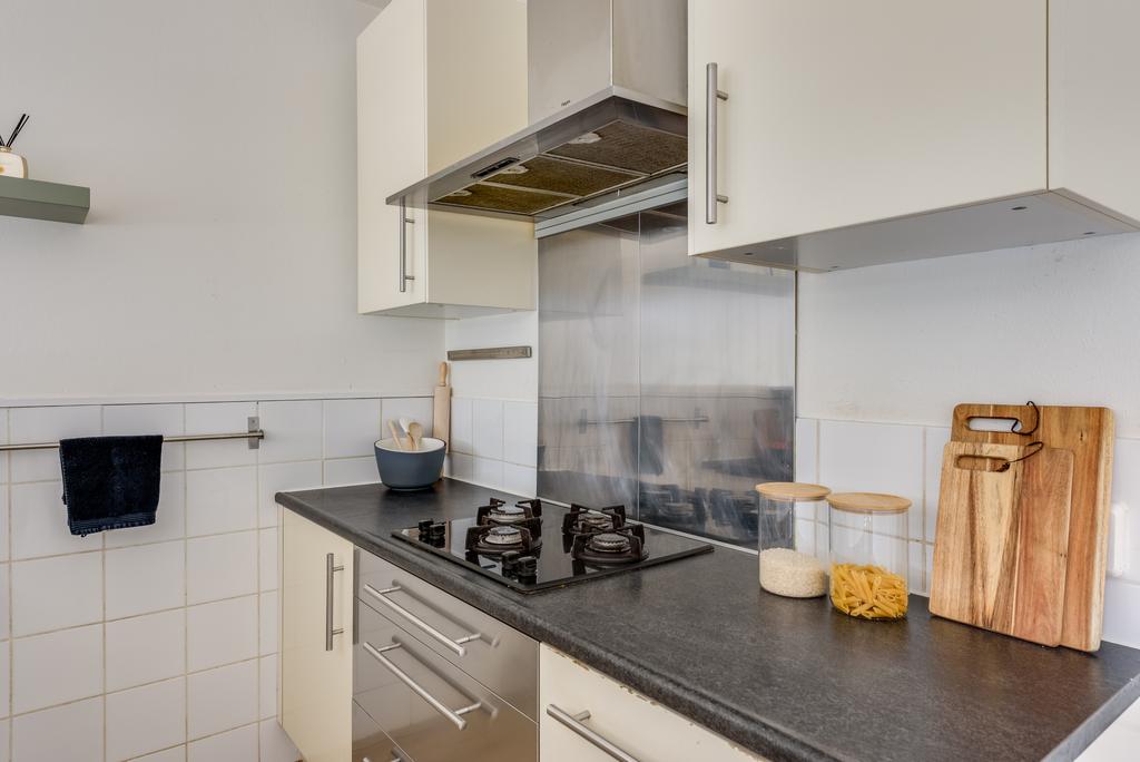 In de open keuken kun je niet alleen met plezier koken, maar ook genieten van het contact met de mensen in de woonkamer. Dankzij de slimme indeling blijf je betrokken bij het gezelschap terwijl je bezig bent met culinaire hoogstandjes. De keuken is voorzien van moderne inbouwapparatuur, waaronder een 4-pits gasfornuis, vaatwasser en koel-vriescombinatie. Vanuit de woonkamer heb je ook toegang tot het balkon, waar je kunt ontspannen en genieten van de buitenlucht. Het gehele appartement is voorzien van een nette laminaatvloer.