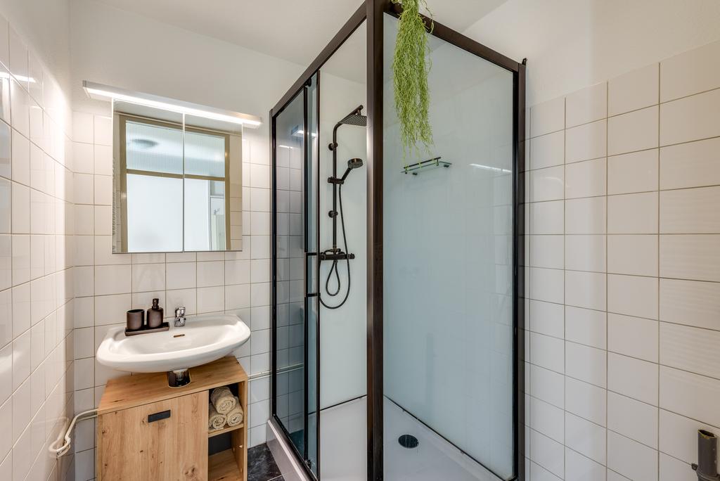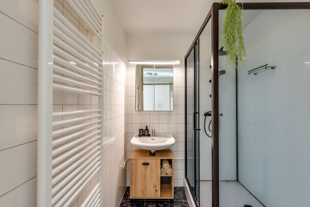 De badkamer is stijlvol uitgerust met een inloopdouche voorzien van een regendouche, die in 2021 vernieuwd is. Daarnaast vind je er een wastafel met wastafelmeubel en een handige spiegelkast. Het toilet bevindt zich apart, voor extra gemak en privacy. Hier kun je genieten van comfort en functionaliteit in een eigentijdse badkameromgeving.