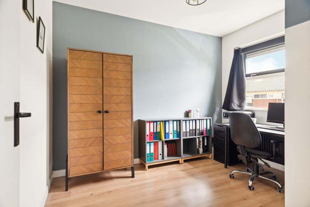 Betreed de eerste verdieping vanuit de hal en ontdek een functionele indeling met drie slaapkamers, de overloop en een heerlijke badkamer. De slaapkamer aan de voorzijde is momenteel in gebruik als thuiskantoor en heeft een oppervlakte van ongeveer 9 m², terwijl de tweede slaapkamer, gelegen aan de tuinzijde en tevens de master bedroom, met circa 15 m² nog ruimer is. Ook de derde slaapkamer (ca. 9 m²) met zicht op de tuin is lekker ruim en is voorbereid met een wateraansluiting op eventueel een thuissalon of bijvoorbeeld logeerkamer met eigen wasgelegenheid.