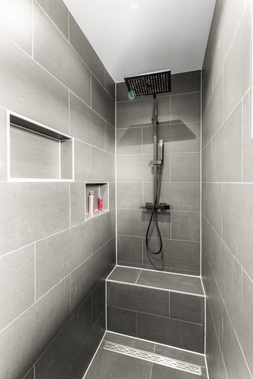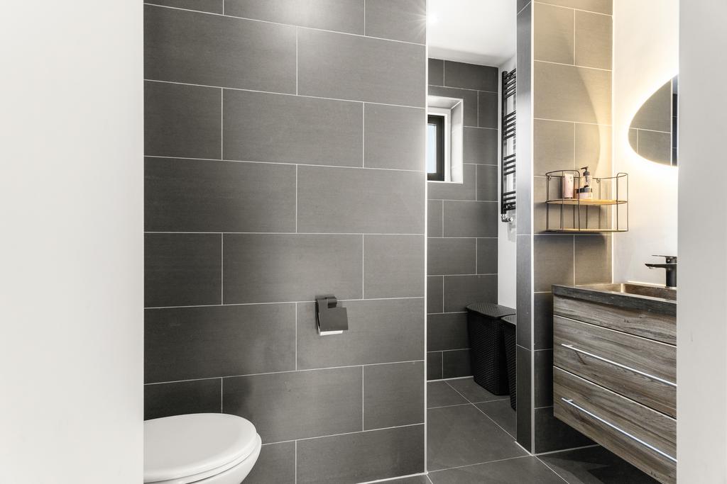 De badkamer is voorzien van een ruime inloopdouche voorzien van een comfortabel zitje. Maar dat is niet alles, een slim ingebouwd nisje biedt de perfecte opbergruimte voor al je douchebenodigdheden. Een elegante dubbele wastafel met bergruimte én vergeet de eyecatcher niet: de badkamerspiegel met in kleur verstelbare verlichting, die niet alleen de ruimte verlicht, maar ook een verfijnde touch van stijl toevoegt aan deze moderne badkamer.