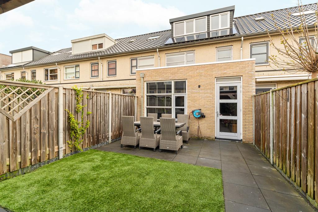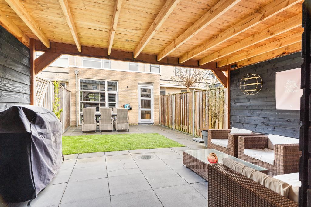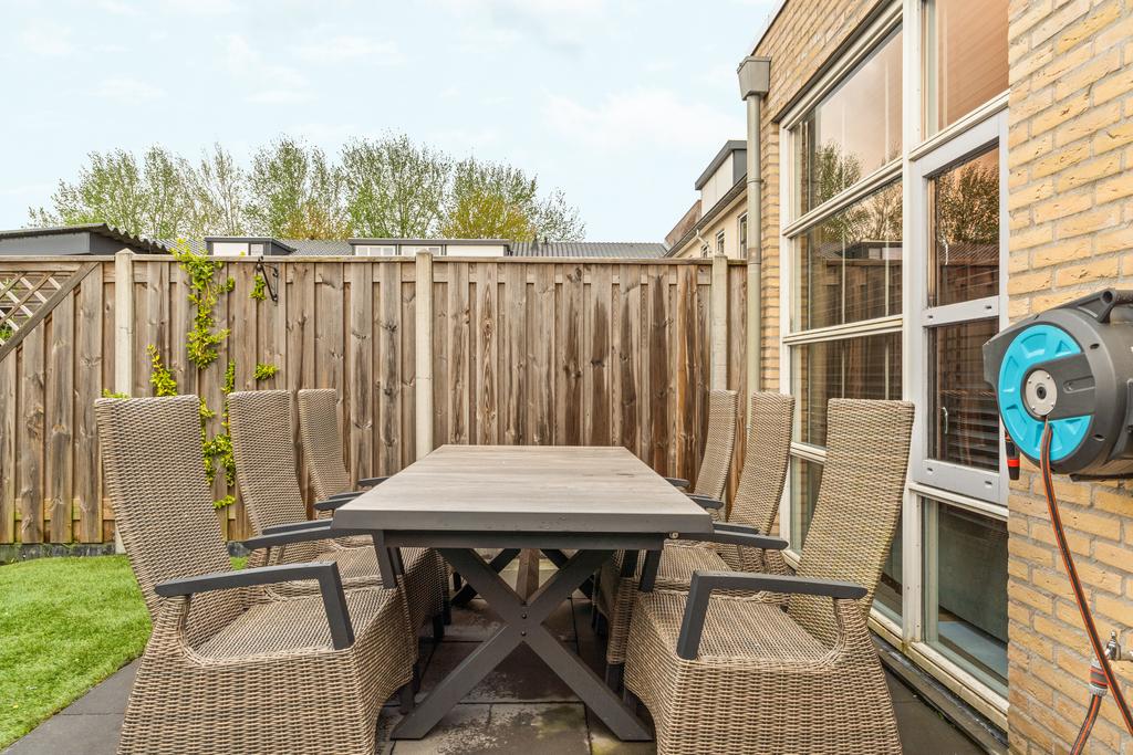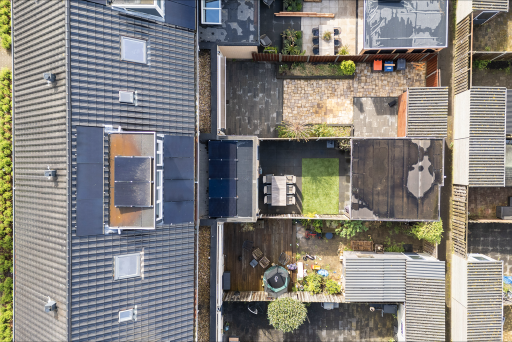 Vanuit de woonkamer stap je zo de tuin in, die prachtig en onderhoudsvrij is aangelegd met bestrating en kunstgras. Achterin de tuin vind je een houten overkapping met een berging, ideaal voor een gezellig zitplekje. Dankzij de ligging op het zonnige zuidwesten is er altijd een plekje in de zon te vinden. Plaats een comfortabele tuinset of loungeset, ontspan en geniet van het buitenleven!