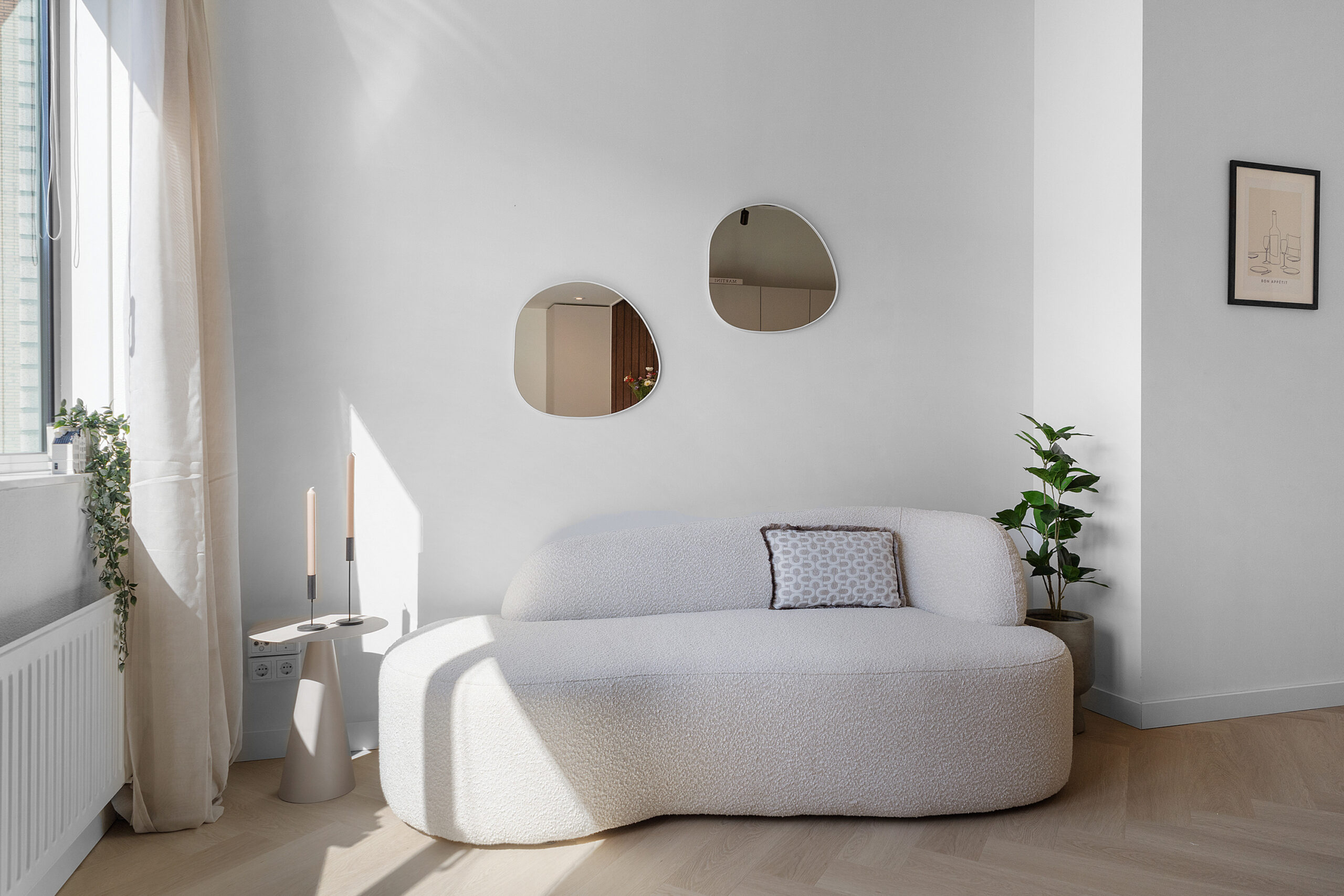 Een bijzondere ingebouwde kastenwand die de gehele lengte van het appartement volledig benut, maakt dat je nauwelijks nog meubels hoeft mee te nemen en je hier al je spullen makkelijk in kwijt kunt. Een eettafel, tv-meubel, compleet bed of kledingkast kopen hoeft niet meer. Wat een gemak!