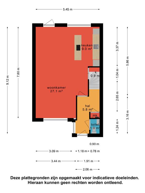 Deze informatie is door ons met de nodige zorgvuldigheid samengesteld. Onzerzijds wordt echter geen enkele aansprakelijkheid aanvaard voor enige onvolledigheid, onjuistheid of anderszins, dan wel de gevolgen daarvan en wijzen de koper nadrukkelijk op zijn wettelijke onderzoeksplicht. Alle opgegeven maten zijn ingemeten conform NEN 2580 en zijn indicatief.