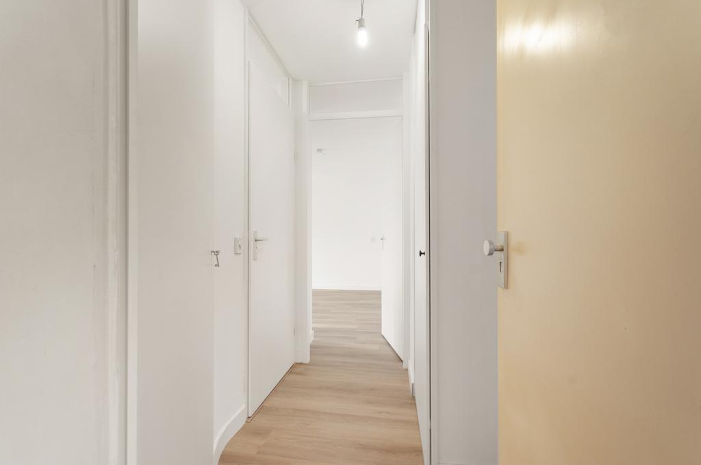 Indeling: Entree/hal, gang met meterkast, separaat toilet met fontein (vernieuwd in 2024). Verder vind je op de gang een inpandige opbergkast met plaats voor de wasmachine/droger en de intercominstallatie.