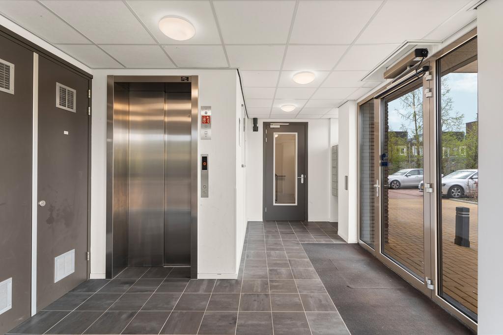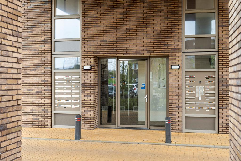 Wanneer je het appartementencomplex binnentreedt bevindt je je direct in de centrale hal met bellentableau en brievenbussen. Met de trap of lift ga je naar het appartement gelegen op de tweede verdieping. Via de begane grond heb je toegang tot jouw eigen externe berging.