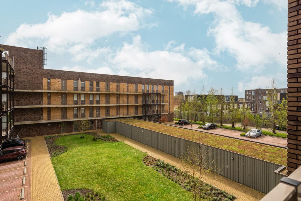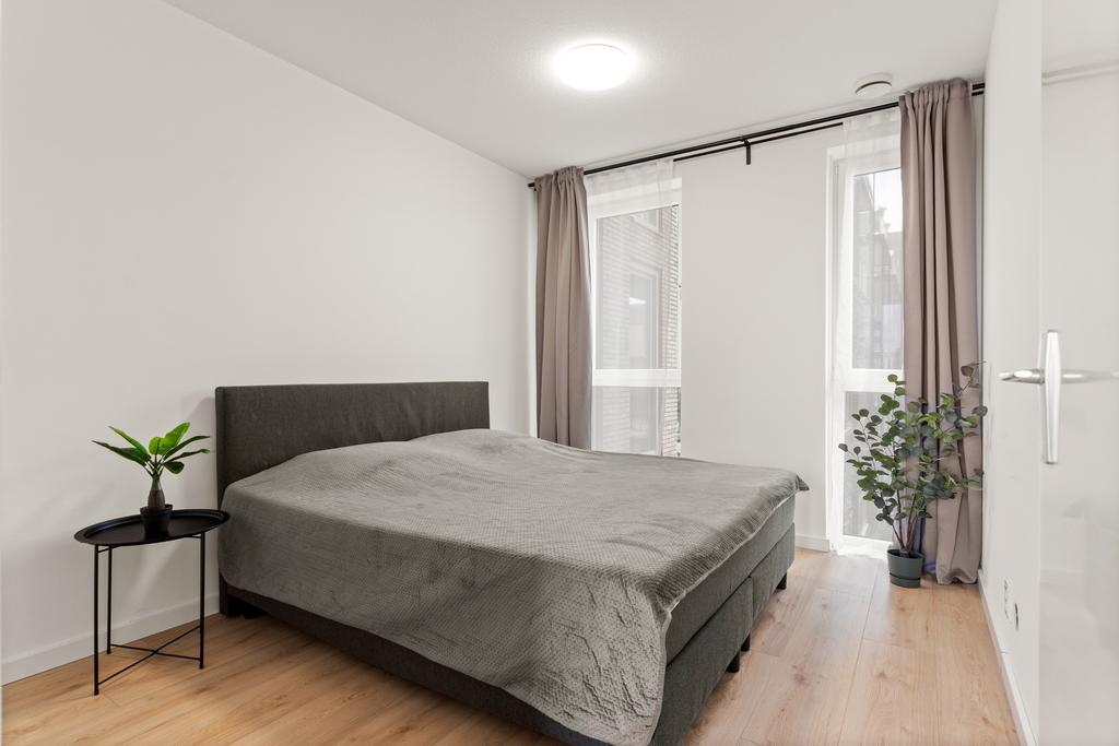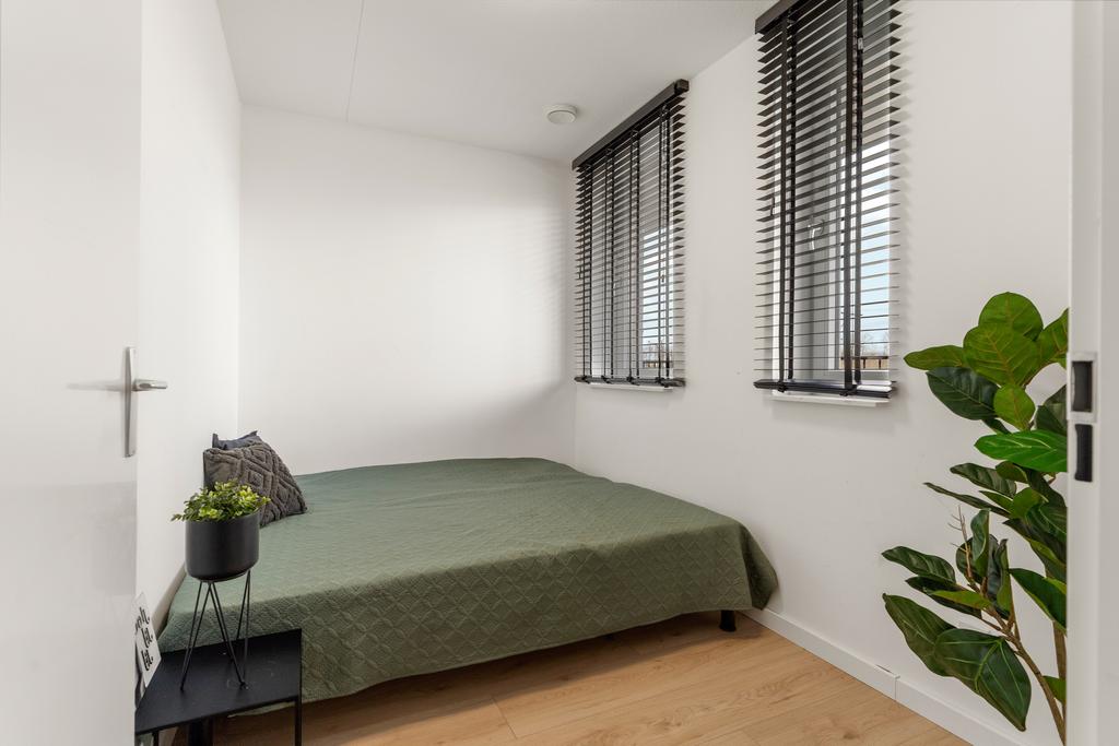 Dit appartement beschikt over twee slaapkamers. De grootste kamer, ongeveer 11 m² groot, met zicht op de binnen tuin van het complex grenst aan zowel de woonkamer, beschikt over twee prachtige kamerhoge raampartijen, sfeervol en lekker licht. Een heerlijke kamer om tot rust te komen na een lange dag. De tweede slaapkamer, met ongeveer 7 m², ligt op een gunstige plek aan de galerij en biedt eveneens voldoende ruimte voor bijvoorbeeld een ruim thuiskantoor, hobbyruimte of gewoon een fijne tweede slaapkamer.