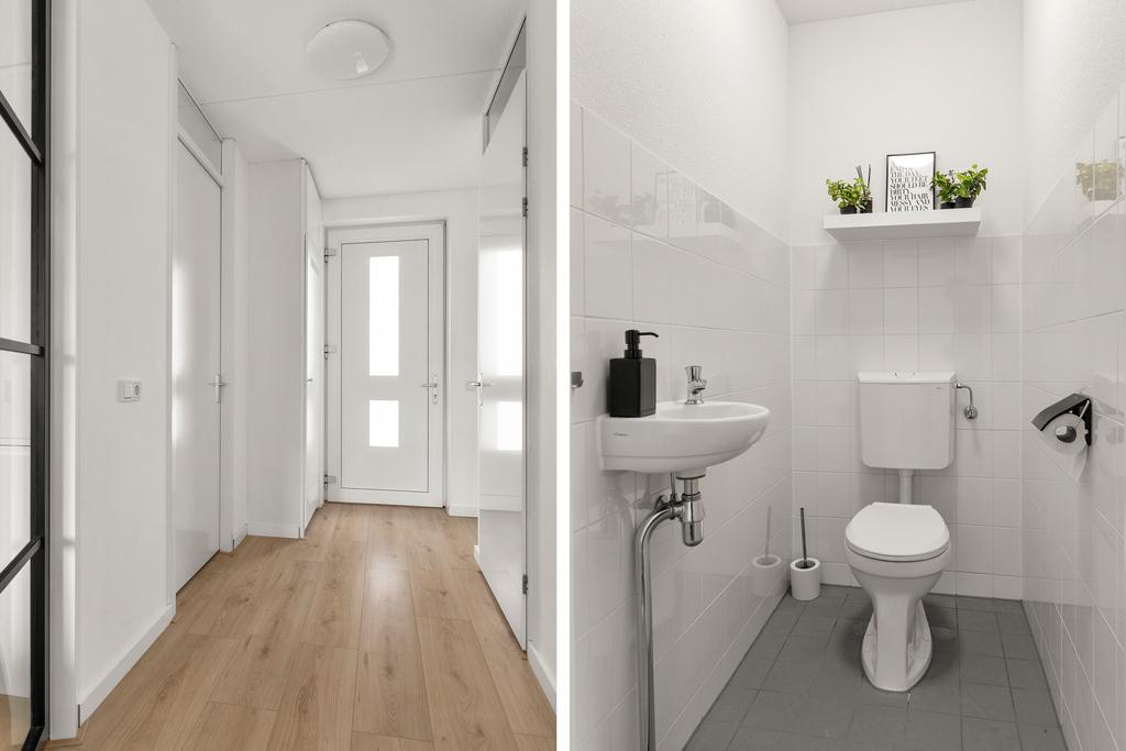 Zodra je de dit geweldige appartement binnenstapt, ervaar je direct de ruimtelijke resultaten van dit appartement. De riante hal biedt naast de meterkast, garderobe en separaat toilet voldoende ruimte voor een zitje om de schoenen uit te doen. Vanuit de hal zijn alle vertrekken van het appartement te bereiken. De ruime hal is lekker licht en heeft cachet vanwege de stijlvolle stalen glasdeur naar de woonkamer.