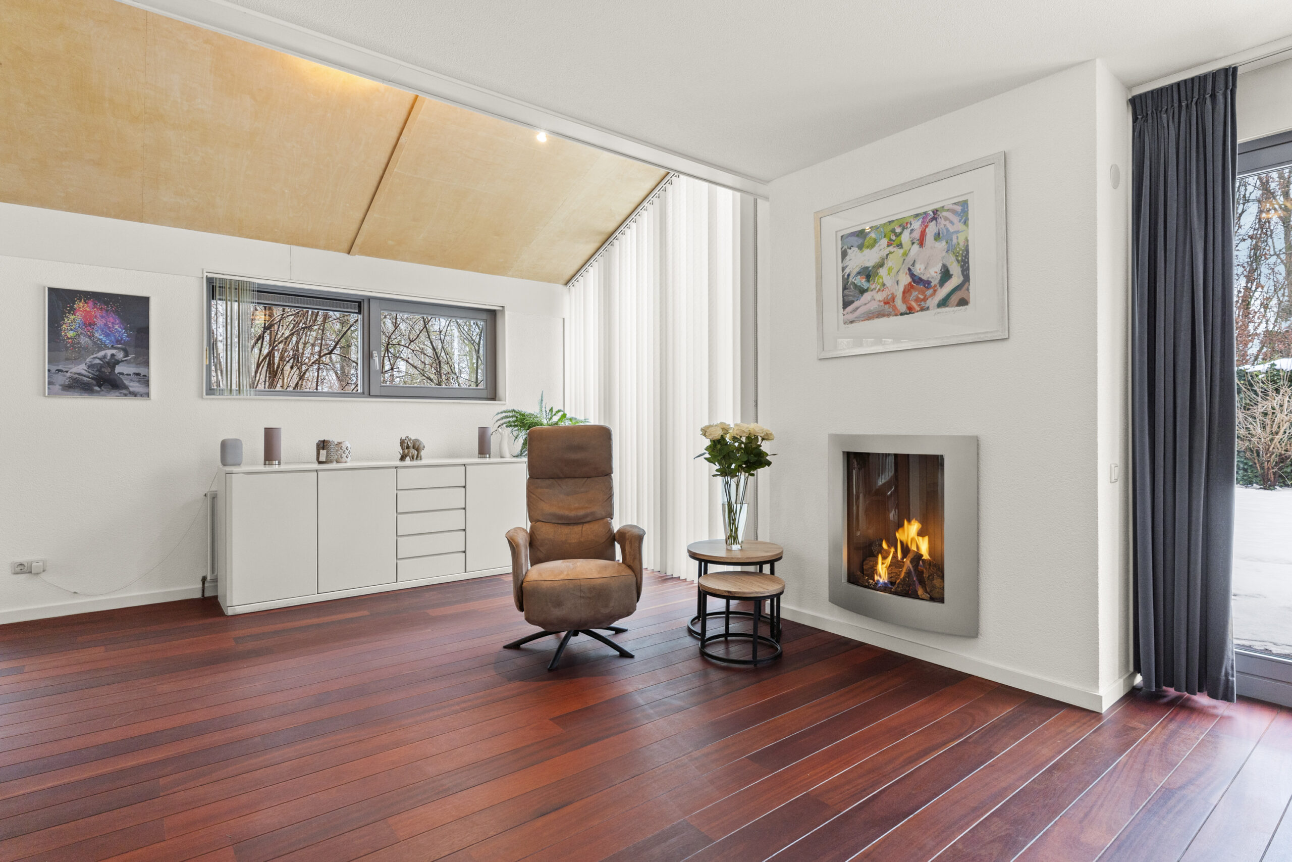 De royale achtertuin op het noordwesten biedt volop privacy en vanwege de grootte kun je hier de gehele dag van de zon genieten. Daarnaast is er een vrijstaande garage, perfect voor opslag of hobbygebruik. Aan de voorkant van de woning bevindt zich een fijne serre, waar je ook in de winter lekker warm kunt zitten en tegelijkertijd het buitengevoel beleeft. Ook beschikt de woning over een oprit met plek voor twee auto's én is er een laadpaal aanwezig.