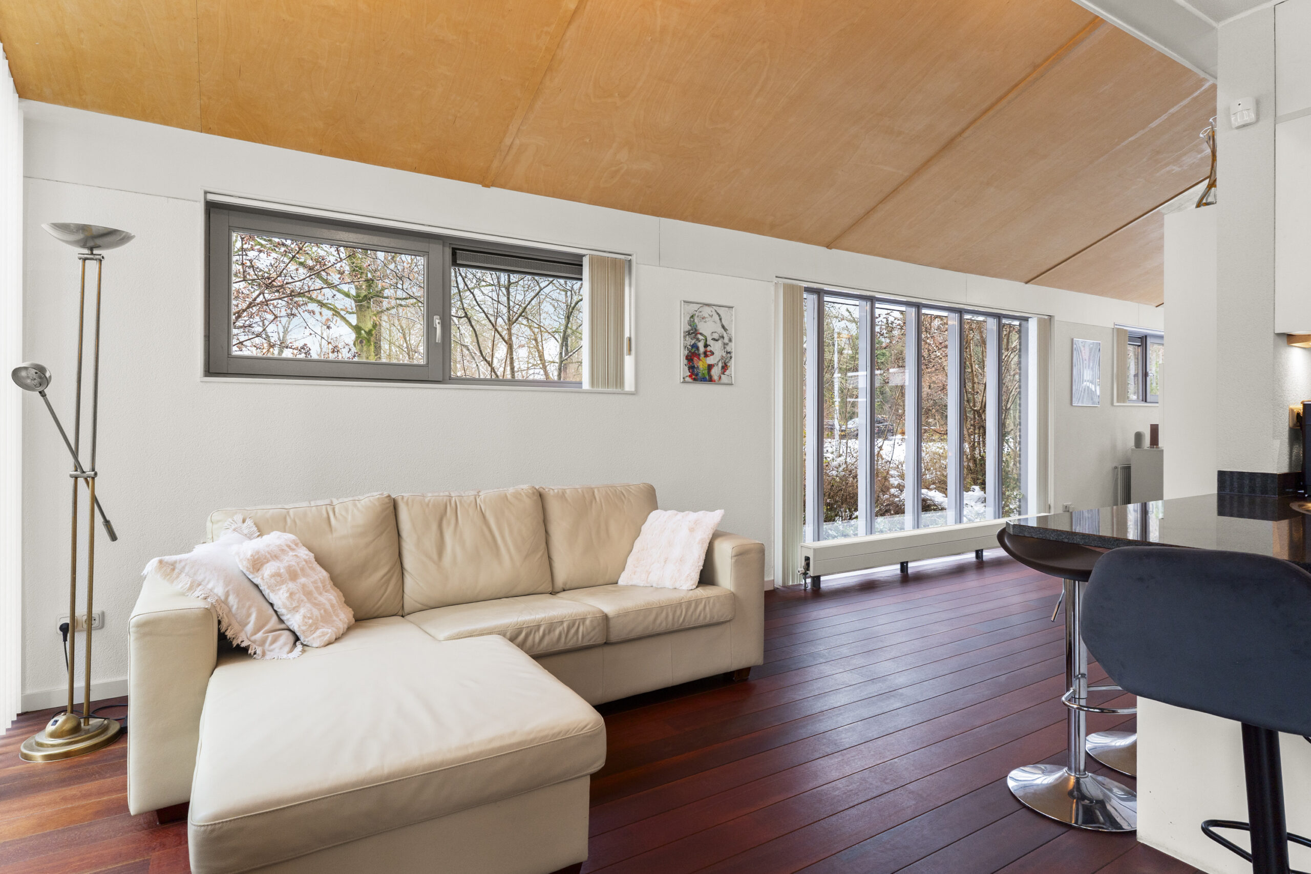 - Speelse indeling met centrale keuken en 2 zithoeken
