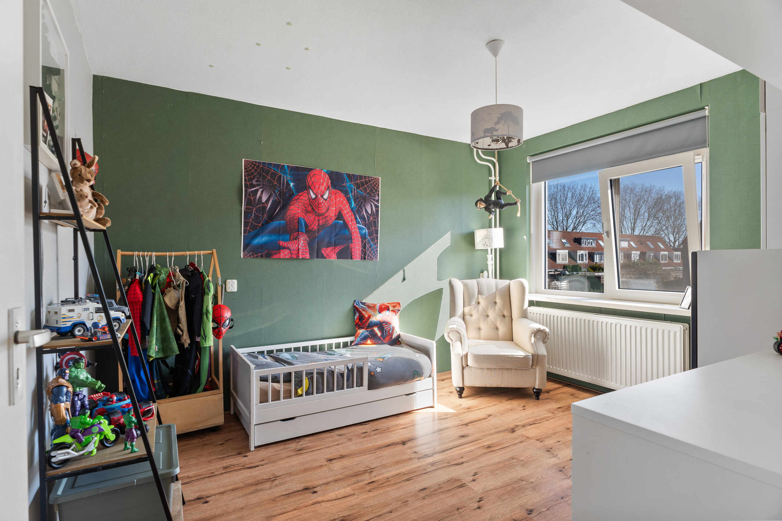 Via de vaste trap bereik je de eerste verdieping, waar drie ruime slaapkamers en de badkamer zich bevinden. De twee ruime slaapkamers aan de tuinzijde hebben een oppervlakte van ongeveer 12,5 m² en 6.5 m². De slaapkamer aan de voorzijde heeft een oppervlakte van circa 13 m².