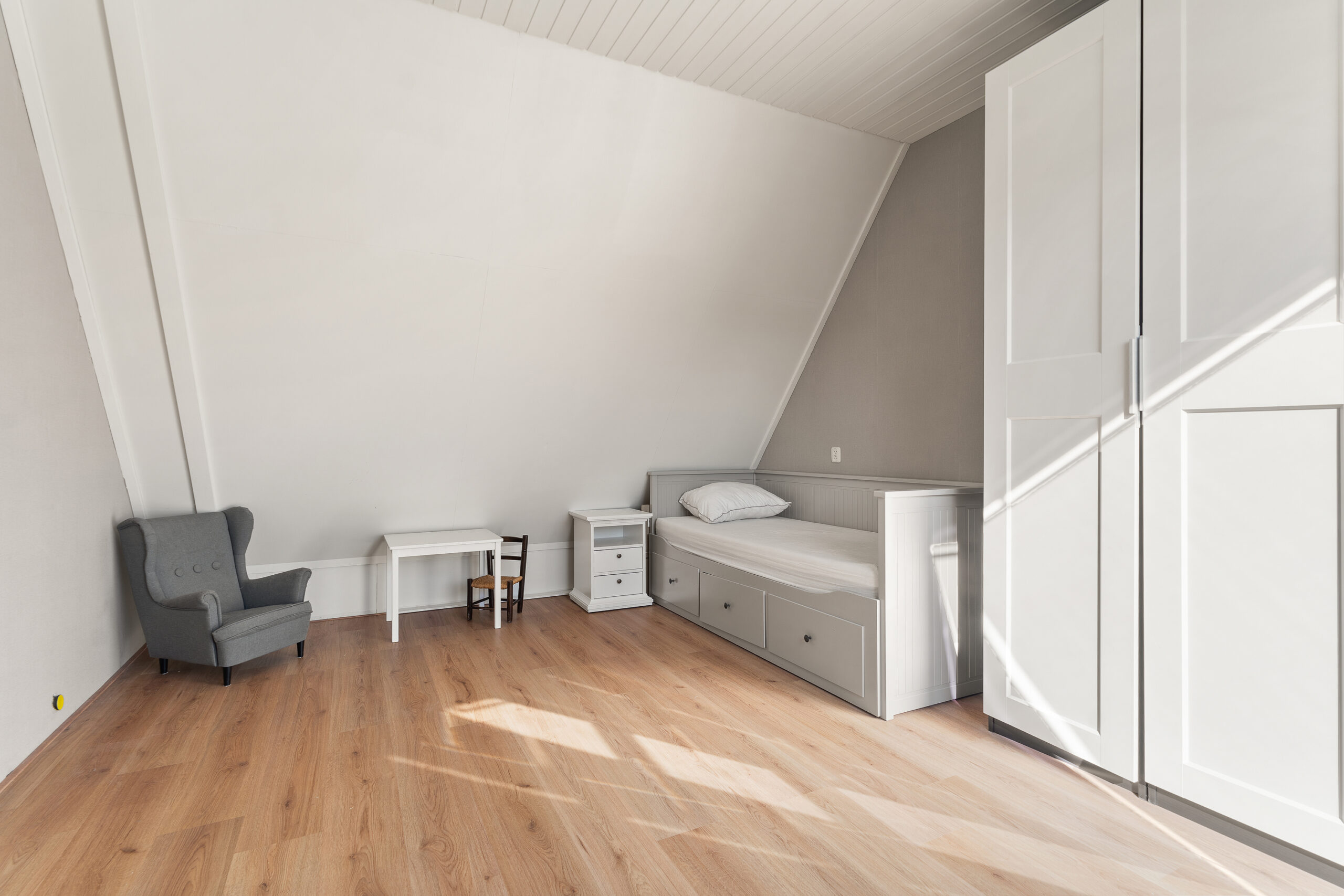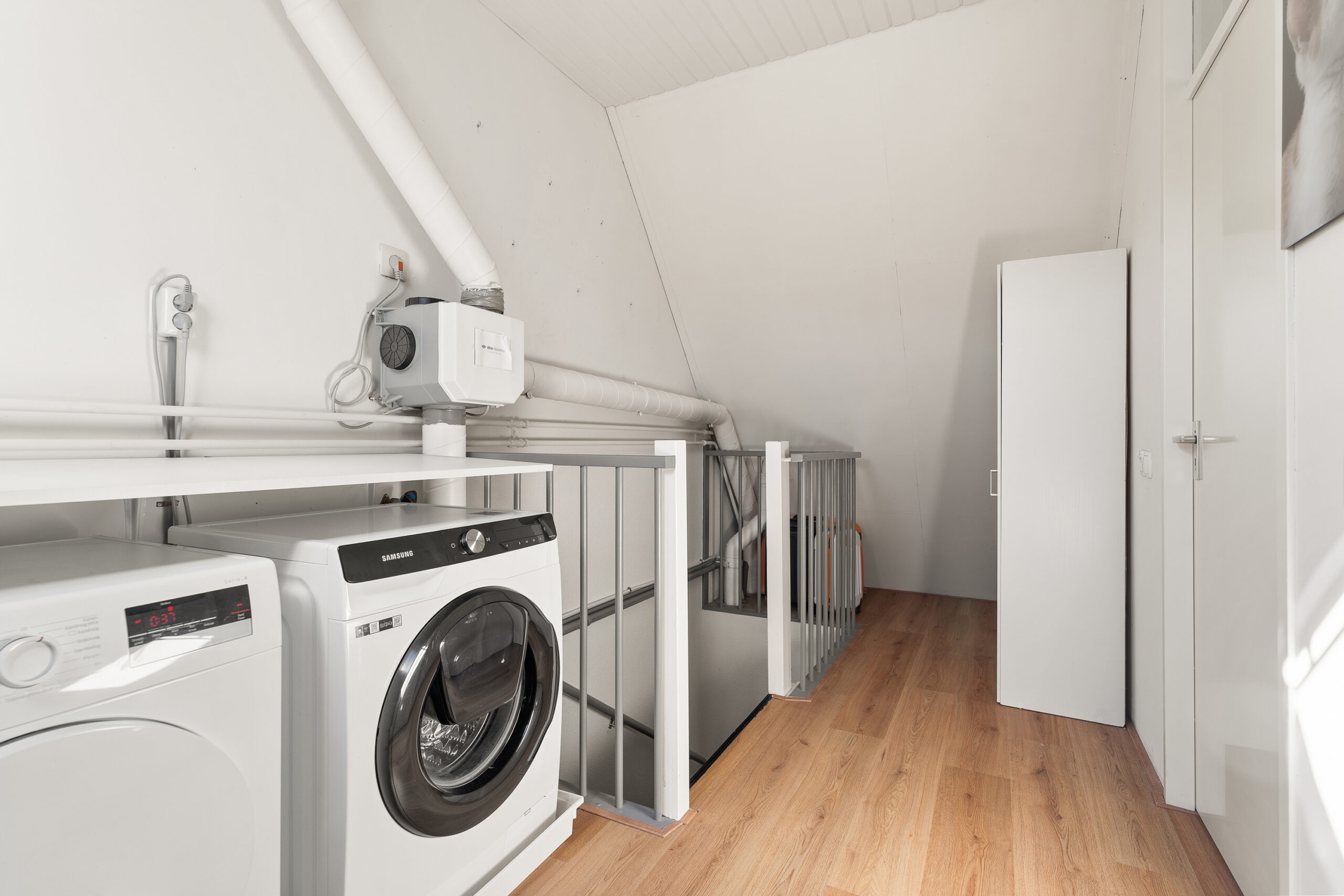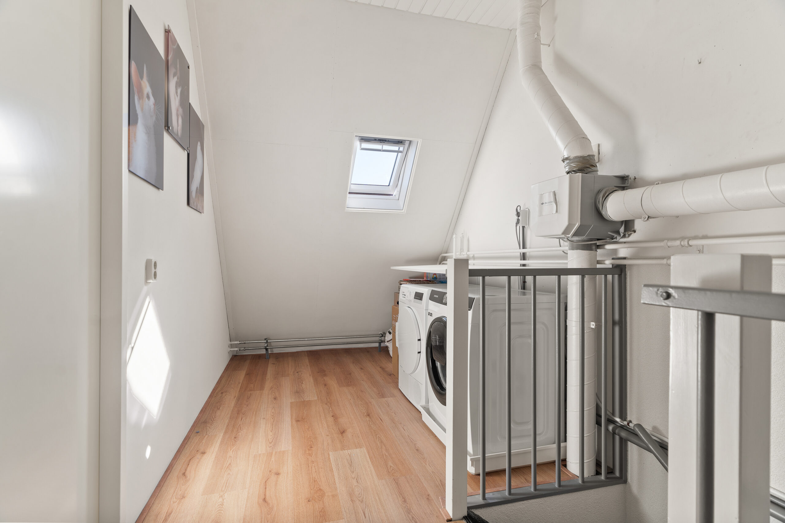 Via de overloop op de eerste verdieping is de tweede verdieping bereikbaar met een vaste trap. De ruime voorzolder biedt voldoende ruimte voor een werkplek, een wasrek en de opstelling van de wasmachine en droger. Daarnaast bevindt zich op deze verdieping een riante vierde slaapkamer van circa 17 m².