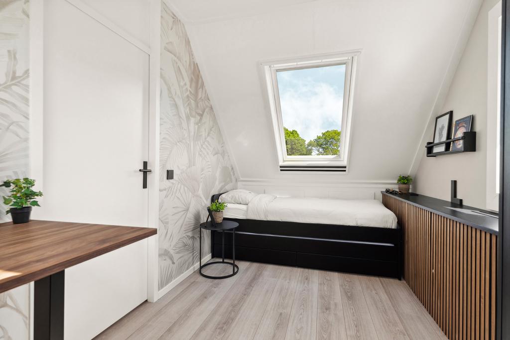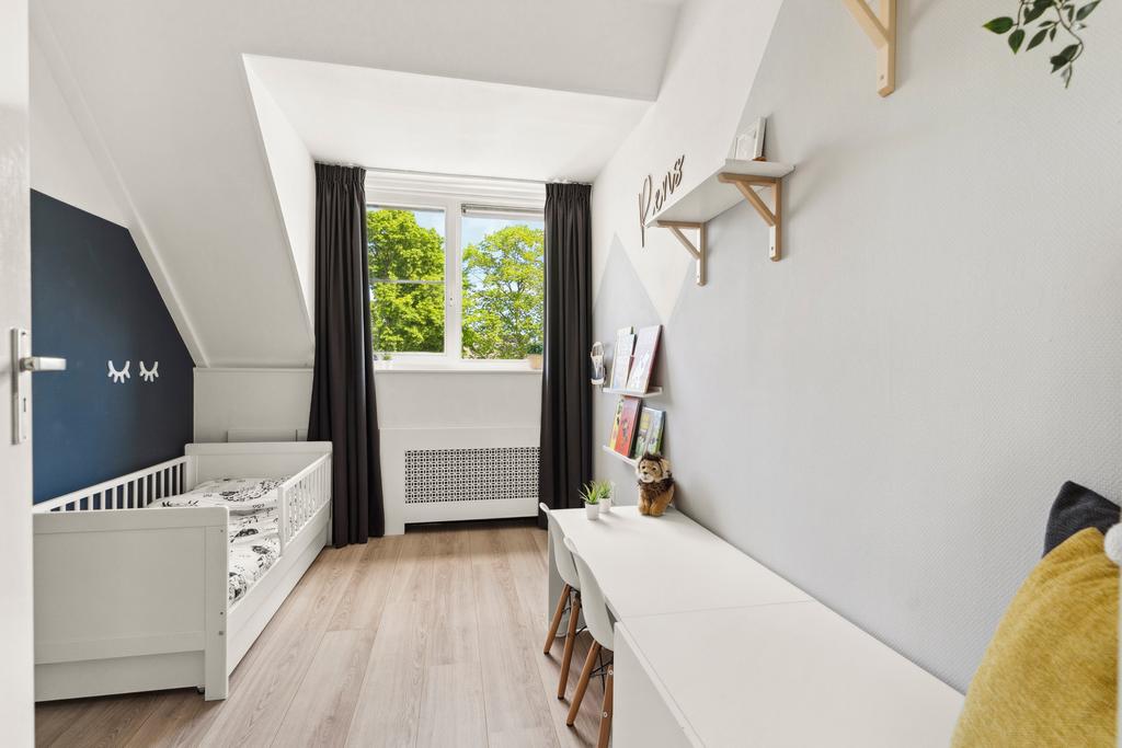 Op deze verdieping bevindt zich tevens een riante vierde slaapkamer van circa 9 m², een fijne volwaardige kamer die ideaal is als slaap-, werk- of hobbyruimte. Uitgerust met een mooie inbouwkast voor extra opbergruimte.