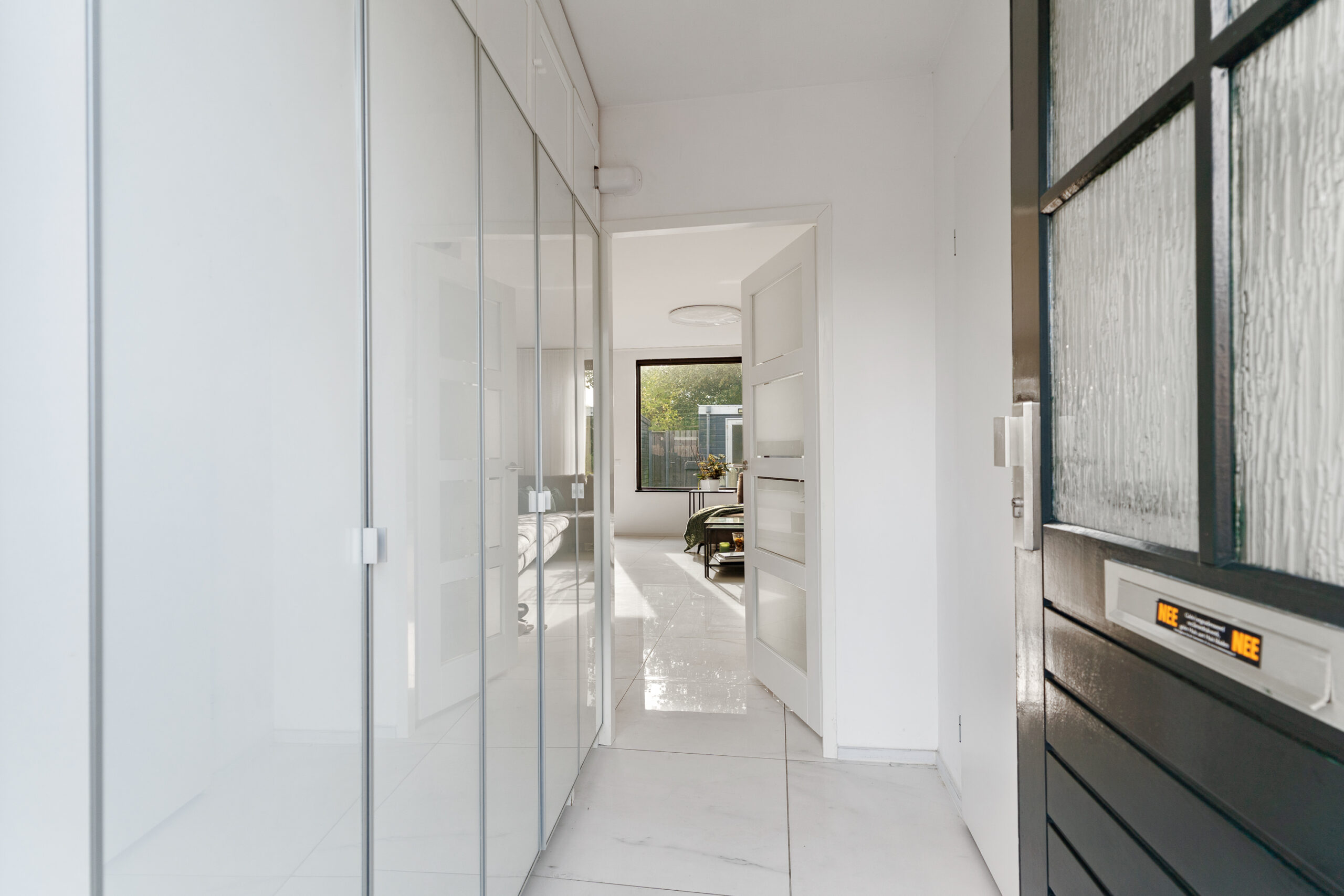 Via de verzorgde voortuin bereik je de entree van de woning. Je komt binnen in de keurig afgewerkte hal met onder andere nette inbouwkasten, een vernieuwde meterkast (3-fase), een toilet met fontein (2021), een garderobe en een praktische ruimte voor de wasmachineaansluiting.