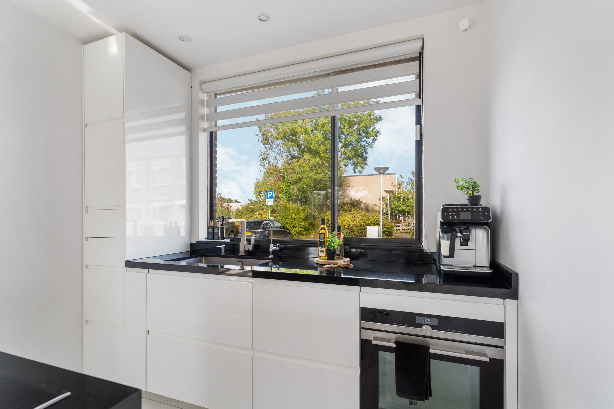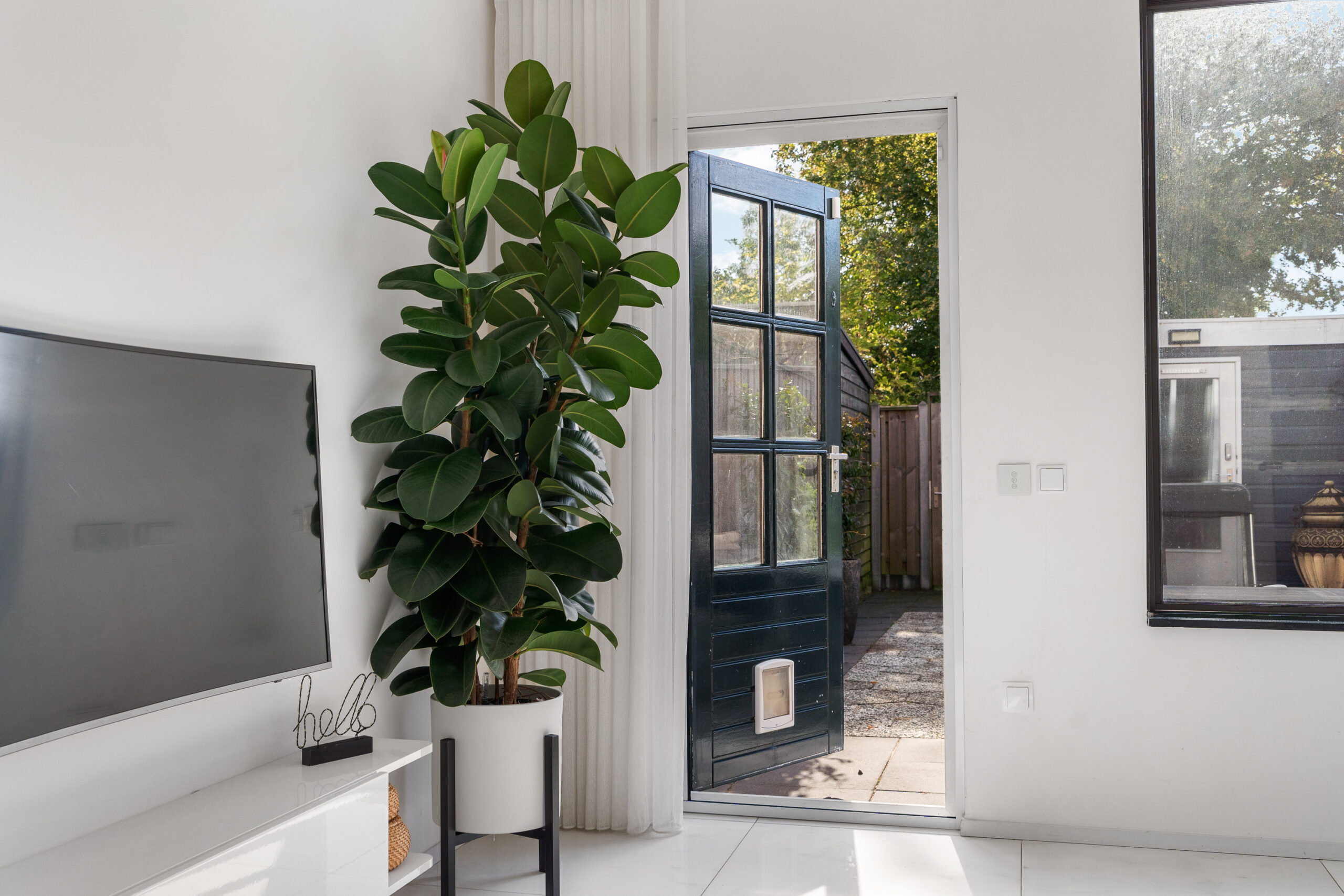 Het grote raam zorgt voor veel daglicht en natuurlijke ventilatie.