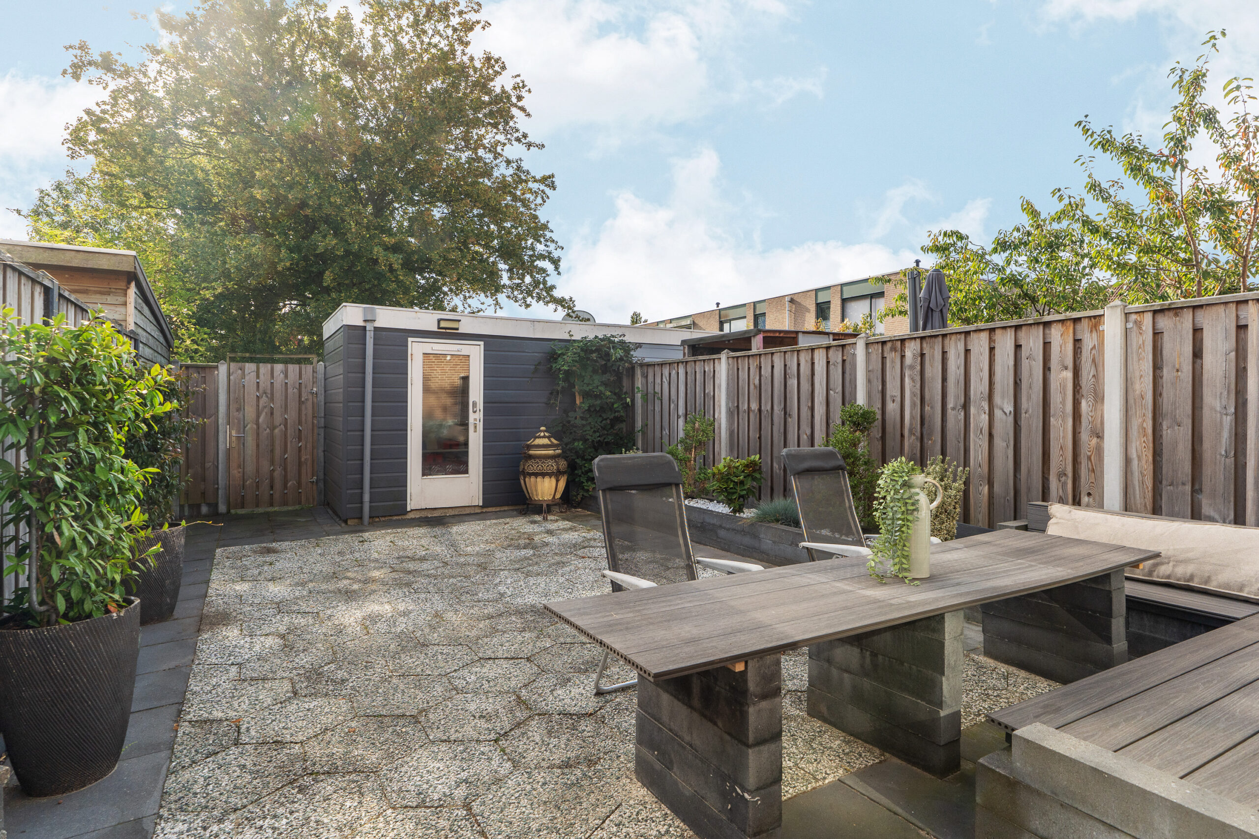 Kortom: een moderne en instapklare buitenruimte die perfect aansluit op het wooncomfort van binnen